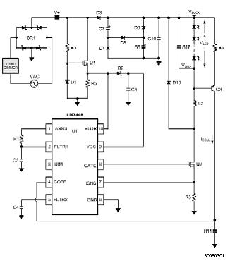 LM3445TRIAC調光LED驅動器,應用電壓范圍從80VAC到270VAC,導通角檢測器/譯碼器可以實現寬全范圍的(100:1)調光,內置3000Ω泄流電阻確保TRIAC信號譯碼無誤,正在申請注冊專利的調控架構可確保恒定的紋波電流以延長LED的工作壽命,可調節輸出電流高至1A,可通過主/從操作方式控制多條燈串的亮度。