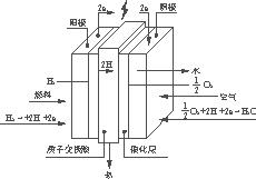 在陽(yáng)極經(jīng)過(guò)質(zhì)子交換膜和催化劑的作用,其化學(xué)過(guò)程為: