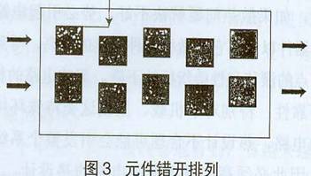 交錯分散排列。在布板設計進行元件布局時,應將發熱元器件與一般器件及溫度敏感器件區分開,發熱器件周圍應留有足夠的散熱氣體流動通道,發熱元件應錯開分散排列,如圖3所示。這與通常布局時的整齊劃一排列恰好相反,有利于改善散熱效果。[page]