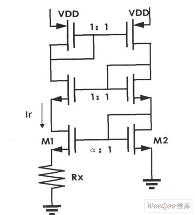 電流比較電路由電壓比較器A1,若干電阻和MOS管構成。參考圖2可知,電流比較電路的左半部分將電流轉化為電壓,而A1比較兩者電壓差給出判斷電壓Vc。
