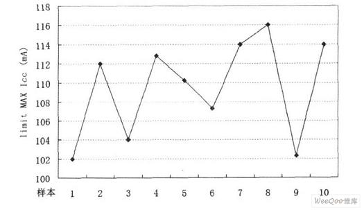 將以上設計的限流電路嵌入某穩壓芯片(內含電荷泵電路)中,實現流片量產(CMOS工藝)。當VDD=3V時,通過測量量產芯片得到輸出電流極限數據。統計如圖5所示,可知當輸出電流處于100~120mA范圍內時,限流電路開始工作,關閉系統即保護LDO安全。由此可見,本設計電路結構簡單,功能可靠,可廣泛應用于電源芯片中。