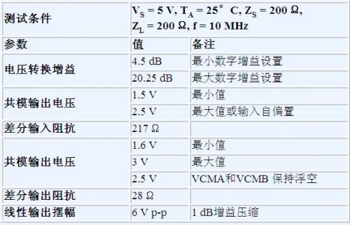 表3. ADL5356和AD8376接口和增益參數