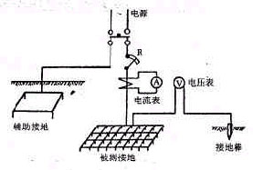最初人們對(duì)接地電阻的測(cè)量是用伏、安法,這種試驗(yàn)是非常原始的。圖1是用安培計(jì)、伏特計(jì)的測(cè)量方法。在測(cè)定電阻時(shí)須先估計(jì)電流的大小,選出適當(dāng)截面的絕緣導(dǎo)線,在預(yù)備試驗(yàn)時(shí)可利用可變電阻R調(diào)整電流,當(dāng)正式測(cè)定時(shí),則將可變電阻短路,由安培計(jì)和伏特計(jì)所得的數(shù)值可以算出接地電阻。