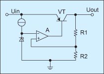 取樣電壓加在比較器A的同相輸入端,與加在反相輸入端的基準電壓Uref相比較,兩者的差值經放大器A放大后,控制串聯調整管的壓降,從而穩定輸出電壓。當輸出電壓Uout降低時,基準電壓與取樣電壓的差值增加,比較放大器輸出的驅動電流增加,串聯調整管壓降減小,從而使輸出電壓升高。相反,若輸出電壓Uout超過所需要的設定值,比較放大器輸出的前驅動電流減小,從而使輸出電壓降低。供電過程中,輸出電壓校正連續進行,調整時間只受比較放大器和輸出晶體管回路反應速度的限制。