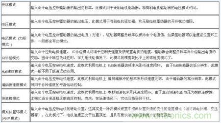 請見下表(以下模式并不全部存在于所有型號的驅動器中)