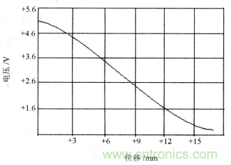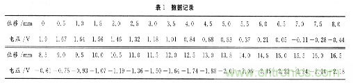 從圖7中PC機(jī)界面顯示位移一電壓坐標(biāo)圖,表1記錄的數(shù)據(jù)以及圖8在示波器上顯示的霍爾線性電路理想電壓一位移曲線圖相比較,可以發(fā)現(xiàn)由于傳感器實(shí)驗臺受外界干擾等原因使得輸出信號輸出誤差在所難免,而且沒有電平轉(zhuǎn)換,使得VB繪圖中得到的數(shù)值存在負(fù)值;但是可以在圖中看到傳感器輸出的電壓值在正負(fù)之間有明顯的對稱性,與要求輸出的理想輸出信號波形相符合,證明本系統(tǒng)運(yùn)行良好,設(shè)計的非常成功。