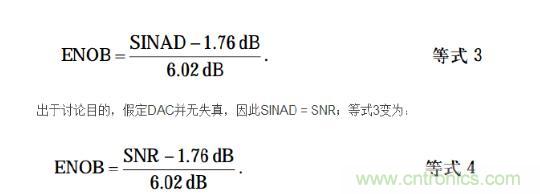 有效位數(ENOB)和信納比(SINAD)之間存在非常有用的關系, 具體如下: