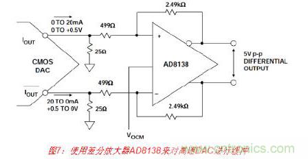 但是應注意,與差分工作模式相比,以這種方式使用DAC的單端輸出時,共模抑制性能將 下降,且2階失真產物將增加。