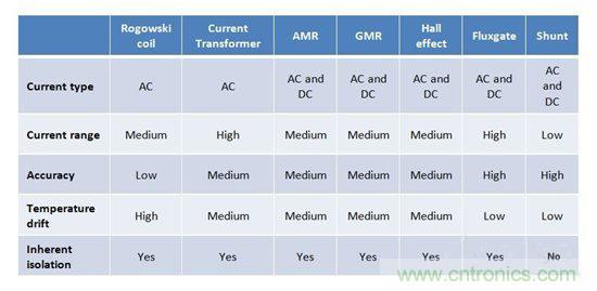 表1:電流檢測(cè)方法的比較