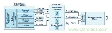 伺服驅(qū)動(dòng)器和ABS編碼器之間的RS-485通信鏈路通常要求最高達(dá)16 MHz的高數(shù)據(jù)速率和低傳播延遲時(shí)序規(guī)格。RS-485線纜延伸長(zhǎng)度最大值通常是50米,但有時(shí)候也可能長(zhǎng)達(dá)150米。對(duì)數(shù)據(jù)通信而言,電機(jī)控制編碼器應(yīng)用是具有挑戰(zhàn)性的環(huán)境,因?yàn)殡姎庠肼暫烷L(zhǎng)電纜會(huì)影響RS-485信號(hào)傳輸?shù)耐暾浴1疚闹攸c(diǎn)闡述電機(jī)控制應(yīng)用采用ADI公司50 Mbps (25 MHz) ADM3065E RS-485收發(fā)器和ADSP-CM40x混合信號(hào)控制處理器的主要好處。