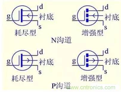 增強(qiáng)型:VGS=0時,漏源之間沒有導(dǎo)電溝道,在VDS作用下無iD;耗盡型:VGS=0時,漏源之間有導(dǎo)電溝道,在VDS作用下iD。