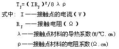 由于存在媒質的散熱因素,在一面散熱一面吸熱的情況下,其溫度上升曲線如圖1所示:起初因溫差小,散熱少,從而造成溫度上升較快;隨著溫差的進一步增大,散熱增多,吸熱相對減少,因而溫度上升較緩,當溫差增大到單位時間內的發熱等于單位時間的散熱,達到熱平衡狀態時,溫度達到一穩定值QF。經驗及資料顯示,接觸點的溫升可以近似用下式估算: