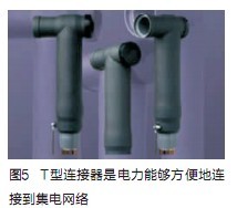 多數(shù)電力傳輸連接器采用直線型連接或T型連接(如圖5)。由于集電網(wǎng)絡(luò)位于地下,可靠性尤為重要。與機艙的機械部件需要耐磨與精密電子等需求不同,集電網(wǎng)絡(luò)不像渦輪機那樣需要連接提供高速及簡便維護性。安裝完畢后,集電網(wǎng)絡(luò)將工作多年。而集電網(wǎng)絡(luò)的故障將導致許多發(fā)電機停機。同樣,集電網(wǎng)絡(luò)到變電站的連接故障將導致整個風力發(fā)電站癱瘓。