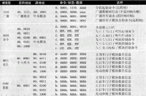 表1車身控制模塊幀模型