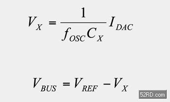 而匯流排電壓結果是根據切換頻率、感測器電容值以及IDAC電流所決定的。CBUS可作為旁路電容器(bypasscapacitor),來穩定所產生的電壓。匯流排上的電容值可增加以進一步提升穩定度。外部電容器則會影響效能與時序等需求。