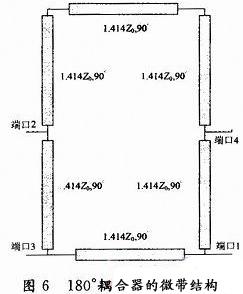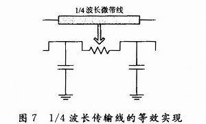 這是一個180°定向耦合器,也稱為rat-race網(wǎng)絡,如圖5所示。物理上可以通過微帶實現(xiàn),如圖6所示。然而對于第1部分提出的710 MHz天線,由于波長太長,這樣的耦合器在移動設備上無法實現(xiàn)。為了實現(xiàn)去耦合,可以用貼片電感和電容做出成等效傳輸線,從而用電感和電容做成一個耦合網(wǎng)絡,這就可以顯著降低耦合器占用的體積。如圖7所示,一個等效1/4波長傳輸線可以用兩個電容和一個電感來等效代替。電容和電感的計算公式為: