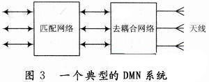 為了提高天線的輻射效率,學者們提出了DMN技術,即在多個天線的輸入端先加耦合器以去掉天線之間的耦合,然后加匹配網(wǎng)絡,如圖3所示。文獻對這種方法進行了詳細論述,并闡述了用S參數(shù)分析正交模的方法。下面對一個二端口網(wǎng)絡的天線進行S參數(shù)的分析。