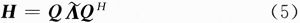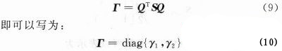 式中:A=diag{λ1,λ2},而Q是幺正的(即QQH=I)。根據(jù)厄米特矩陣的性質,兩個正交值λ1和λ2都是實數(shù),并且小于等于1。將式(5)代入式(4)得: