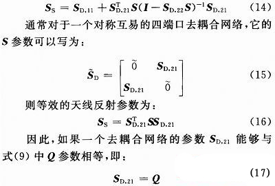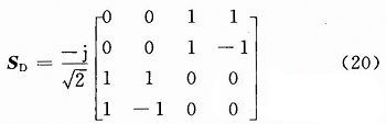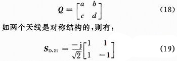 對于一個雙天線系統(tǒng),應該有兩個正交模同時存在,去耦合網(wǎng)絡是一個四端口網(wǎng)絡,正交輻射矩陣可以寫為:
