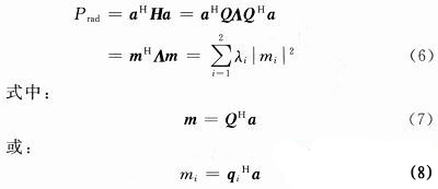 式中:|·|表示復數(shù)的模,上角標H表示厄米特轉置。那么,輻射功率就可以表示為:
