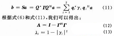 與輻射功率相對的是反射功率。根據(jù)(5)式及厄米特矩陣的性質,如果Q可以將H化為對角矩陣,則S也可以化為對角矩陣。有: