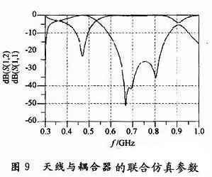 本文從s參數(shù)的角度分析了一個雙天線系統(tǒng)的去耦合方法,并通過一個天線設計實例,使用HFSS和ADS進行去耦合前和去耦合后的仿真。結果顯示加入去耦合網(wǎng)絡和匹配網(wǎng)絡后兩個天線間的耦合可以降低至-35 dB以下,反射系數(shù)也可達到-15 dB以下,這滿足了工作于710 MHz的移動設備的要求。