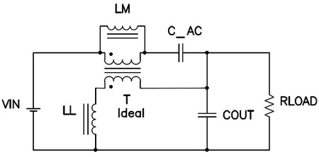 由于這種拓撲與反向拓撲類似,因此許多人會認為要求有一套緊密耦合的繞組。然而,情況卻并非如此。圖2 顯示了連續SEPIC 的兩個工作狀態,其變壓器已通過漏電感(LL)、磁化電感(LM) 和一個理想變壓器(T) 建模。經檢查,漏電感的電壓等于C_AC 的電壓。因此,較小值C_AC 或者較小漏電感的大AC 電壓會形成較大的回路電流。較大的回路電流會降低轉換器的效率和EMI 性能,而這種情況是我們所不希望出現的。減少這種大回路電流的一種方法是增加耦合電容(C_AC)。但是,這樣做是以成本、尺寸和可靠性為代價的。一種更為精明的方法是增加漏電感,其在指定某個定制磁性組件的情況下可以很輕松地實現。