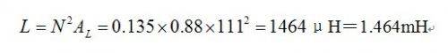 由圖得到磁導率為60,H=21Oe,磁導率下降到90%,為了在給定峰值電流時保持給定電感量,需增加匝數為N匝,選取111匝。