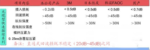 總之直通式光纖連接器對光纖直徑、對切割端面和切割長度要求嚴(yán)格,特別對夾持強(qiáng)度要求更加嚴(yán)格,一旦任何一處與產(chǎn)品沒有適配都將給信號的長期穩(wěn)定性帶來極大的隱患。另外,因?yàn)榛夭〒p耗的參數(shù)完全依附于光纖切割端面的情況,因此產(chǎn)品的回波損耗指標(biāo)對照差,故不適宜用于FTTH接入鏈路的規(guī)模使用。