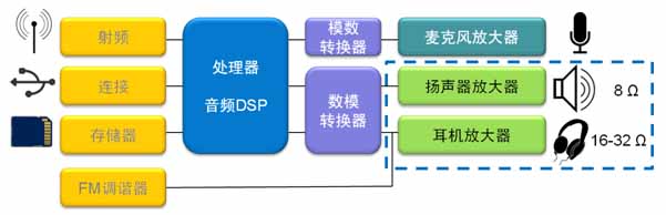 圖1:智能手機(jī)的音頻放大應(yīng)用示意圖。
