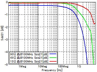 圖6:各種共模扼流線圈的靜態特性 (Zc,Sdd21)