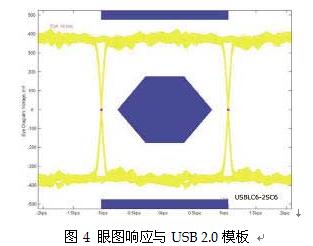 還有一種方法可以檢查這個軌對軌保護元器件對USB協議正常工作模式的影響,就是通過圖4的眼圖響應來分析信號數據位的完整性。