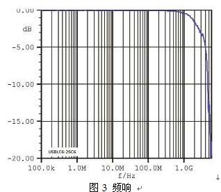 圖3中截止頻率大約為5GHz,遠離USB 480Mb/s收發器的正常工作頻率,因此,USB收發器可以安全工作。