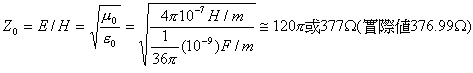 這種外貌是由天線所觀測到的物理「輪廓」;這就好像從河邊向河中打水漂一樣,我們所看到的水波是一波波的漣漪。場傳播是從場的點源,以光速的速度向外輻射出去;其中,。電場成份的測量單位是V/m,磁場成份的測量單位是A/m。電場(E)和磁場(H)的比率是自由空間(free space)的阻抗。這里必須強調(diào)的是,在平面波中,波阻抗Z0,或稱作自由空間的特性阻抗,是和距離無關,也和點源的特性無關。對一個在自由空間中的平面波而言: