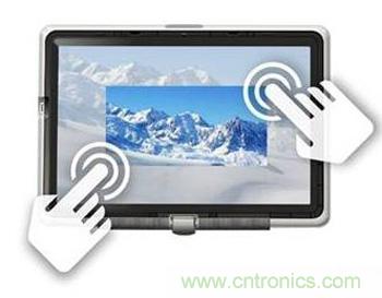 觸摸屏的功能發展由簡及繁,最初的產品只支持最簡單的操[LU4]控,就是一個手指觸摸屏幕上的一點來實現操控。比如我們每天在附件超市的POS終端機,或者在機場的check-in終端上進行的操作。以前,我們只能通過屏幕周邊的機械按鈕進行操控,單點觸摸屏在此基礎上實現了用戶界面方面的一大進步。當然,機械和新型電容式觸摸感應按鈕在我們的家庭、辦公室及其他地方無所不在:手機、固定電話、遙控器、電視、電腦及其各種外設、游戲機、電冰箱、微波爐、烤箱,以及無線電和空調等車內電子控制設備等等。現在,如下列圖1所示的單點觸摸屏在顯示屏上直接集成了用戶控制界面,因此再也不需要傳統的機械按鈕了。