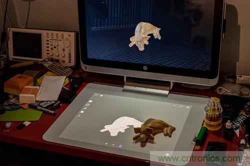 屏幕支架上方的是包含掃描儀相機的投影儀,允許在 Touch Mat 上盡可能直觀的使用。盡管 Touch Mit 本身并非觸控屏幕,但通過這些設(shè)備的交互能夠投影圖片并進行相應(yīng)的觸控交互。Sprout Pro 正面裝備了支持 3D 眼鏡的 23.6 英寸 Zvr顯示器,同時支持虛擬現(xiàn)實和增強現(xiàn)實。
