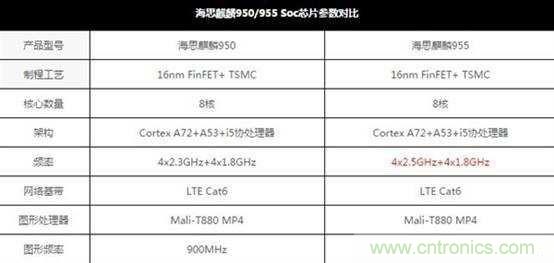 麒麟955架構同樣采用4個A72+4個A53,臺積電的16nm FF+工藝,i5協處理器,并且采用的是華為自主研發的ISP。而GPU同樣采用ARM Mali-T880 MP4。