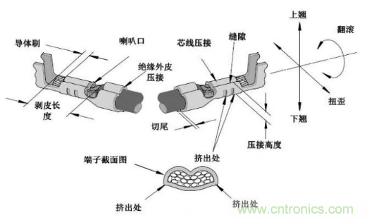 Crimp 是冷壓技術,起源最早可追溯到 1940 年前后。其原理是借助壓線鉗或壓線工具,完成金屬導線和插針的壓接。這種壓接氣密性好、抗腐蝕、線材變形必須超過它的屈服點,因此能夠實現可靠的數據、信號和動力傳輸。在壓接過程中,線的氧化層或硫化層都可以被去除,以壓針和線的殘余彈性保證持久的電氣連接。