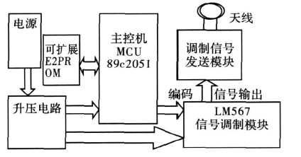 本系統(tǒng)的閱讀器可在6cm范圍內(nèi)識(shí)別應(yīng)答器的有無(wú),若有應(yīng)答器在監(jiān)測(cè)范圍內(nèi),則給出明確的指示并讀取應(yīng)答器預(yù)設(shè)的4位編碼,然后顯示;另外,應(yīng)答器部分還可以通過(guò)開關(guān)設(shè)置4位編碼在閱讀器識(shí)別范圍內(nèi)送出編碼信號(hào)。同時(shí)閱讀器還具有對(duì)應(yīng)答器的編碼進(jìn)行寫入的功能,由應(yīng)答器接收并儲(chǔ)存。設(shè)計(jì)中重點(diǎn)是保證正確率,可以從軟件上增加校驗(yàn)碼來(lái)提高無(wú)線傳輸?shù)目煽柯省?/p>