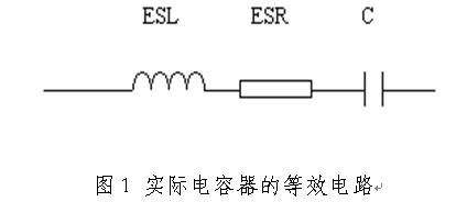 實(shí)際電容器的電路模型如圖1所示,它是由等效電感(ESL)、電容和等效電阻(ESR)構(gòu)成的串聯(lián)網(wǎng)絡(luò)。
