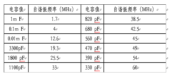 根據(jù)LC電路串聯(lián)諧振的原理,諧振點(diǎn)不僅與電感有關(guān),還與電容值有關(guān),電容越大,諧振點(diǎn)越低。許多人認(rèn)為電容器的容值越大,濾波效果越好,這是一種誤解。電容越大對低頻干擾的旁路效果雖然好,但是由于電容在較低的頻率發(fā)生了諧振,阻抗開始隨頻率的升高而增加,因此對高頻噪聲的旁路效果變差。表1是不同容量瓷片電容器的自諧振頻率,電容的引線長度是1.6mm(你使用的電容的引線有這么短嗎?)。