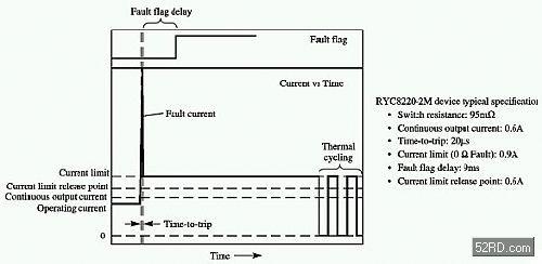 動(dòng)作時(shí)間是指保護(hù)電源開關(guān)器件啟動(dòng)其電流限制回路的速度。硅元件所具有的極快的動(dòng)作時(shí)間使其成為功率限制應(yīng)用中的最佳選擇。與PPTC元件不同之處在于其動(dòng)作后的電流值能夠保持在相當(dāng)高的水準(zhǔn),并由電流限制的設(shè)定值來決定。電流限制設(shè)定值是指硅元件一旦動(dòng)作后將電流所限制到的標(biāo)準(zhǔn),其數(shù)值根據(jù)故障狀態(tài)的嚴(yán)重程度來變化,通常定義為故障電阻的函數(shù)。對(duì)于小功率的應(yīng)用,電流限制值應(yīng)該盡量設(shè)低。