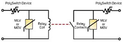 某些過載情況也會導致MOV保持夾緊狀態(tài)并繼續(xù)導電,這將最終造成器件溫度過高而失效。此時可將PPTC器件與MOV器件串聯(lián)并靠近以便其溫度接近,由于MOV將熱傳遞給PPTC器件,PPTC器件參數(shù)變化加快,限制了流過MOV的電流,這樣MOV可在更大過載狀態(tài)提供保護。