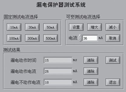 系統開始測試后,根據設定測試參數,自動對測試設備進行初始化,軟件制定控制端口控制字,以選擇適合的硬件電路回路和采樣電阻。使測試電流從小于0.2 I△n開始,在30s內穩定地增加至I△n,測定漏電保護器斷開瞬間的漏電電流值I△,若滿足I△n0<I△<I△n,則漏電保護器的漏電動作電流合格。同時完成測量漏電保護器的動作時間。此系統還可以直接選擇固定的測試電流,直接測量漏電保護器的動作時間。