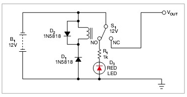 這個方法是用一只繼電器來處理反極性電壓問題。例如,12V供電系統使用12V的繼電器。當為電路施加正確極性時,D1為反偏,繼電器S1保持關閉狀態。則輸入和輸出電源線正常連接到繼電器的端子,電流就流到最終電路上。二極管D1阻擋了繼電器的供電,防止電路耗電。