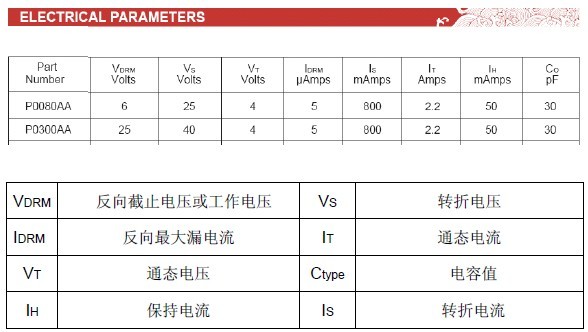 • VDRM:截止電壓必須大于被保護的電路的最大工作電壓