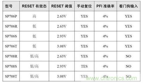 因為是3.3V系統,使用的外置看門狗型號為SP706TE,特征如下: