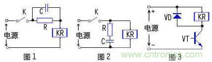 KR在VT導(dǎo)通時(shí),上面電壓為上正下負(fù),電流方向由上向下。在VT關(guān)斷時(shí)會(huì),KR中電流突然中斷,會(huì)產(chǎn)生感應(yīng)電勢,其方向是力圖保持電流不變,即總想保持KR電流方向?yàn)橛上轮料?。這個(gè)感應(yīng)電勢與電源電壓迭加后加在VT兩端,容易使VT出穿。為此加上VD,將KR產(chǎn)生的感應(yīng)電勢短路掉,電注是你所說的“順時(shí)針方向在二極管和繼電器所的小回路里面流動(dòng)”,從而保護(hù)VT。圖2中的R、C也是利用C上電壓不能突變的原理,來吸收感應(yīng)電勢。(VT三級(jí)管,KR繼電器,VD續(xù)流二極管)