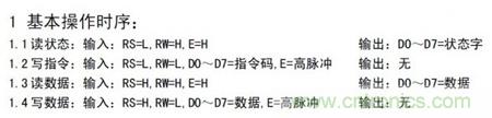 大家要慢慢學會看時序圖,要知道操作一個器件的精華便蘊藏在其中,看懂看準了時序,你操控這個芯片就是非常容易的事了。1602的時序是我見過的一個最簡單的時序: