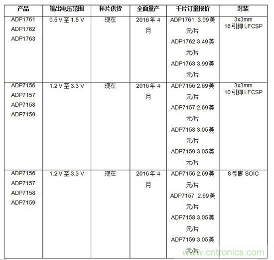 ADP176x和ADP715x LDO的目標應用包括:無線基站、有線通信、工業儀器儀表、高端音頻設備和醫療設備。 這些最新的LDO能為噪聲敏感型精密模擬和RF應用——尤其是需要更高的數據速率時——提供更干凈的供電軌、更快的瞬態響應和更高的電源電壓抑制比(PSRR)。